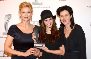 Preistrâ°gerin Lisa Tomaschewsky (mi) mit Veronica Ferres und / Verleihung „7. Audi Generation Award 2013“ / 15. Nacht der Generationen / Preis, Verleihung im Hotel Bayerischer Hof in M¸nchen am 19. Oktober 2013 / Bitte Fotovermerk: Agentur Schneider-Press/Frank Rollitz
